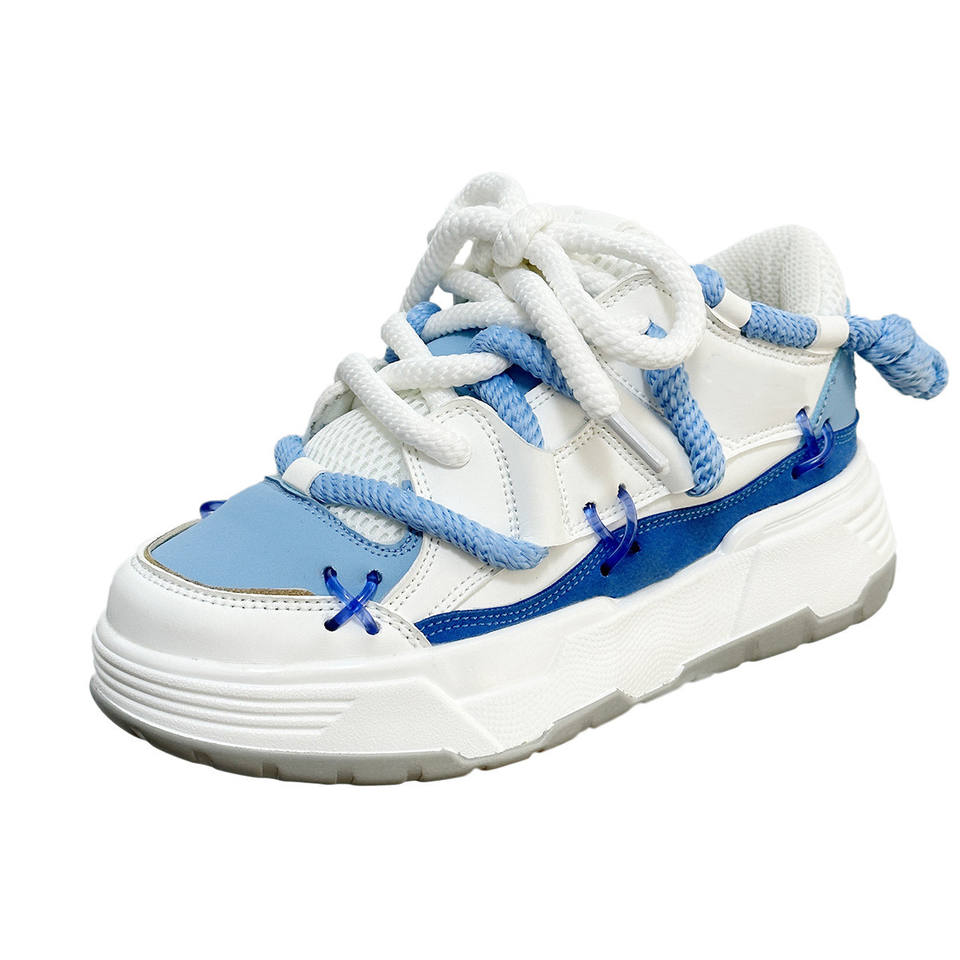 Scarpe da Donna Casual in Pelle Blu-Grigio Taglia 12, Sneakers Leggere con Lacci Personalizzabili per Corsa e Tempo Libero
