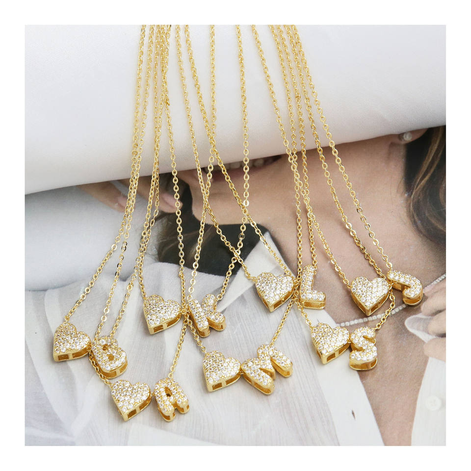 Collana con cuore iniziale a bolle piccole di moda con scritta in ottone e zircone con nome collana d'amore