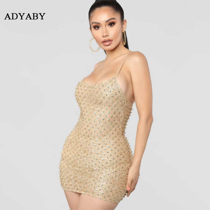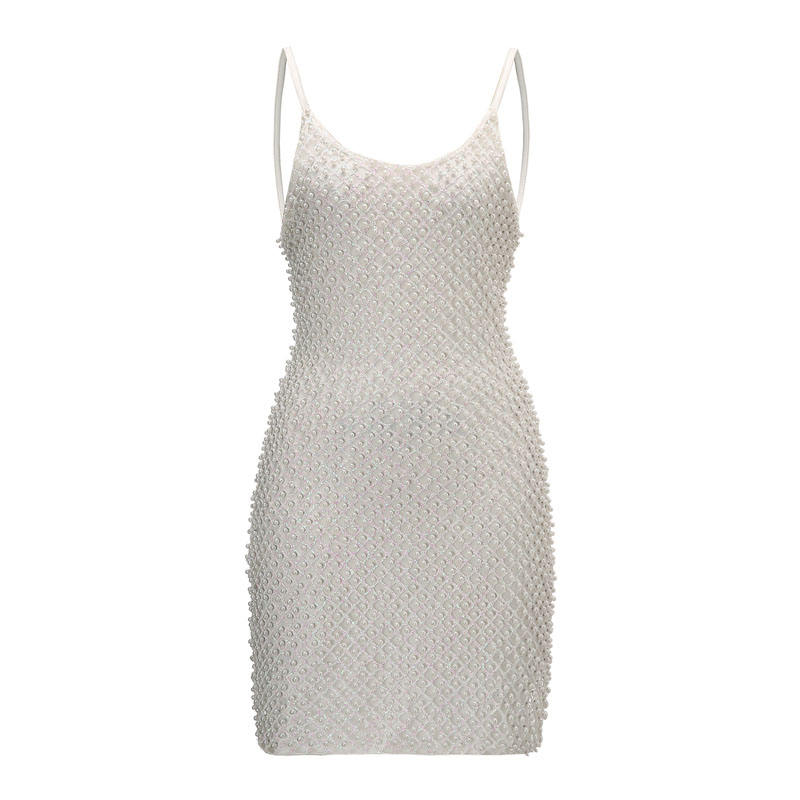 Abito Aderente con Spalline Sottili e Perline, Sexy da Club, Abbigliamento da Festa per Donne, Vestito Mini Senza Maniche Aderente da Sera
