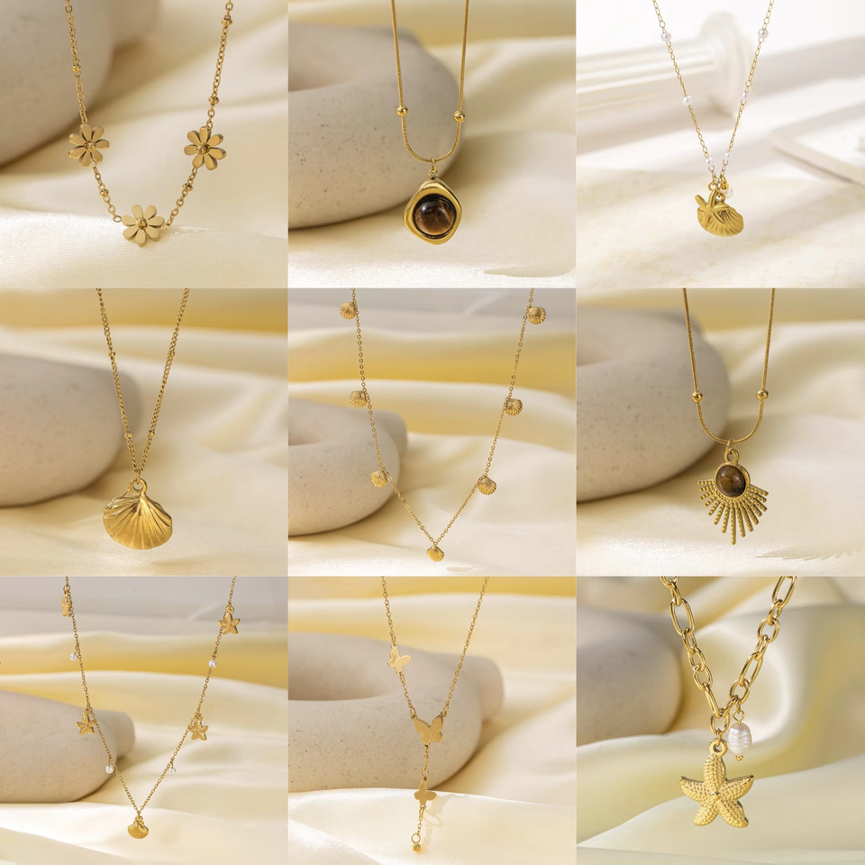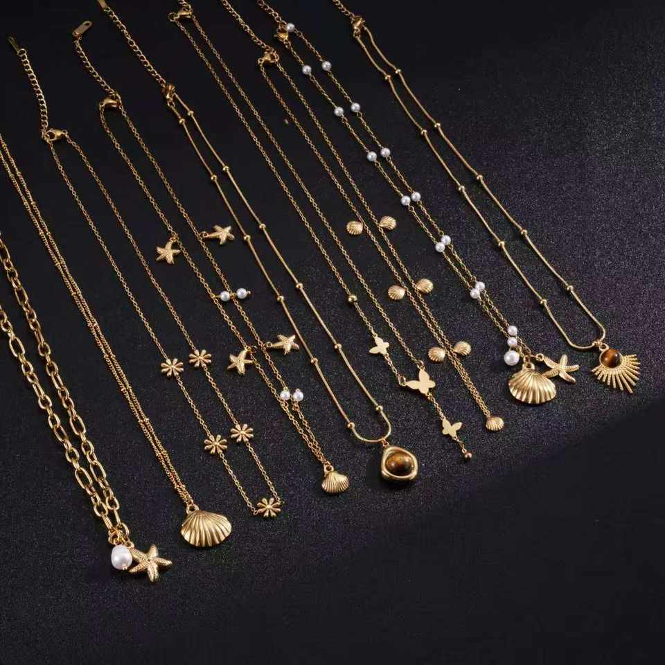 Fashion Stainless Steel Necklace for Women Versatile and Stylish Featuring Unique Sea Star,tiger Eye Stone Shell butterfly
