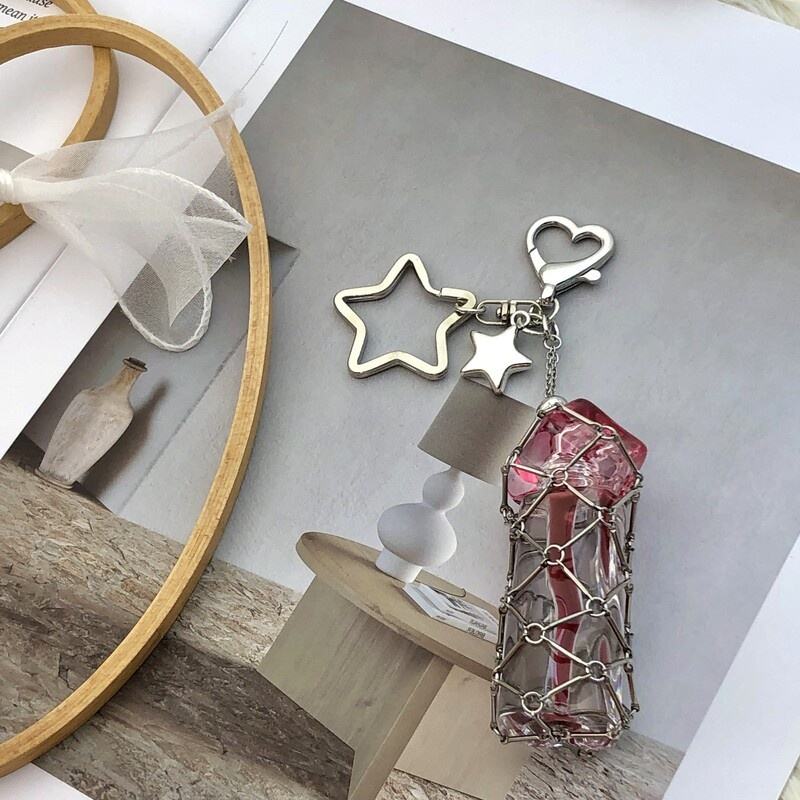 Portachiavi alla Moda in Acciaio Inossidabile con Tasca a Rete, Porta Rossetto Personalizzato, Porta Balsamo Labbra, Accessorio per Borsa