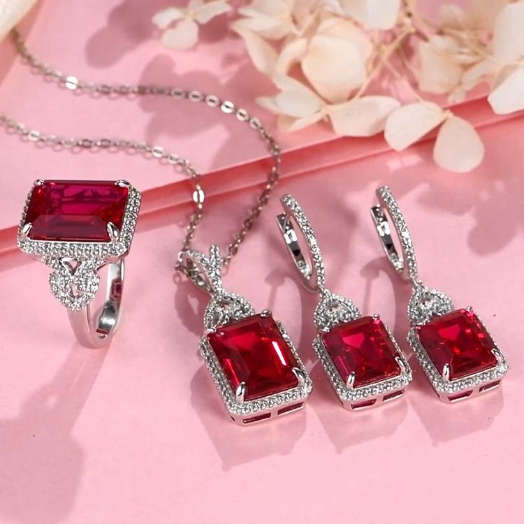 Fashion Stud Earrings 925 Sterling Silver Handmade Earrings Jewelry Ruby Stone Drop Earrings Pendant for Women