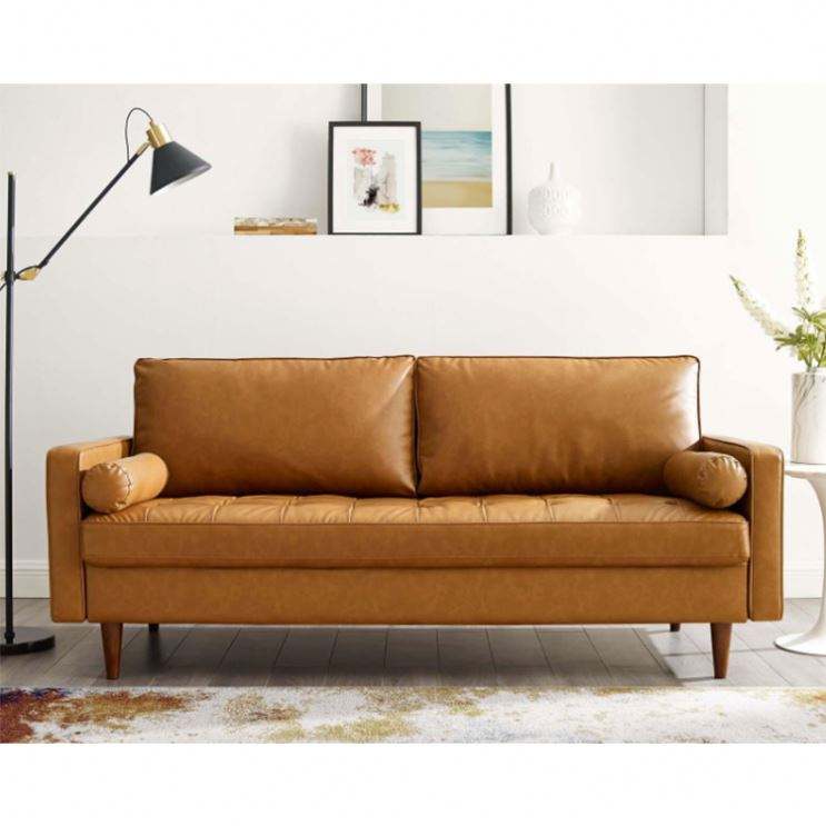 Product Name:Tan Faux Leather 3-Seater Tuxedo Sofa with Square Arms
