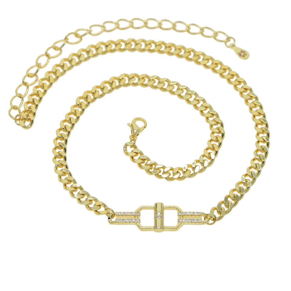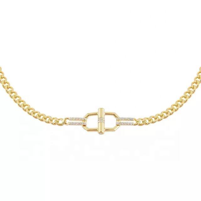 Fashion Thin Cuban Chain Women Gold Cuban Toggle Clasp Choker Necklace