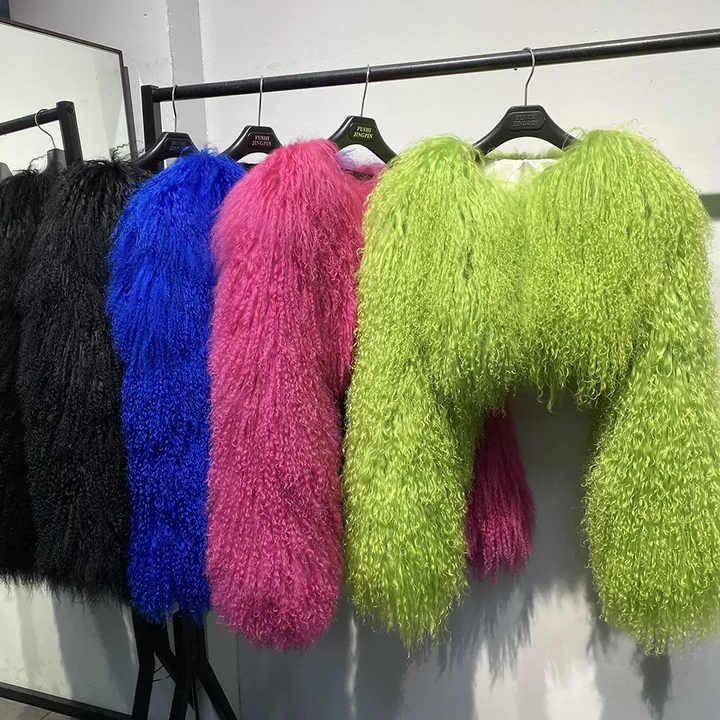 Tendenze Moda Invernale: Cappotto Corto in Pelliccia Gialla Mongola, Cappotti in Pelliccia di Pecora per Donne