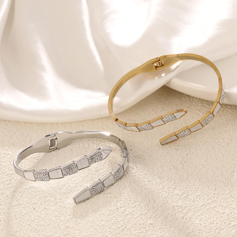 Bracciale alla Moda Placcato Oro 18k con Conchiglia, Bracciale a Serpente in Acciaio Inossidabile con Zirconia Cubica per Donne e Ragazze, Idea Regalo