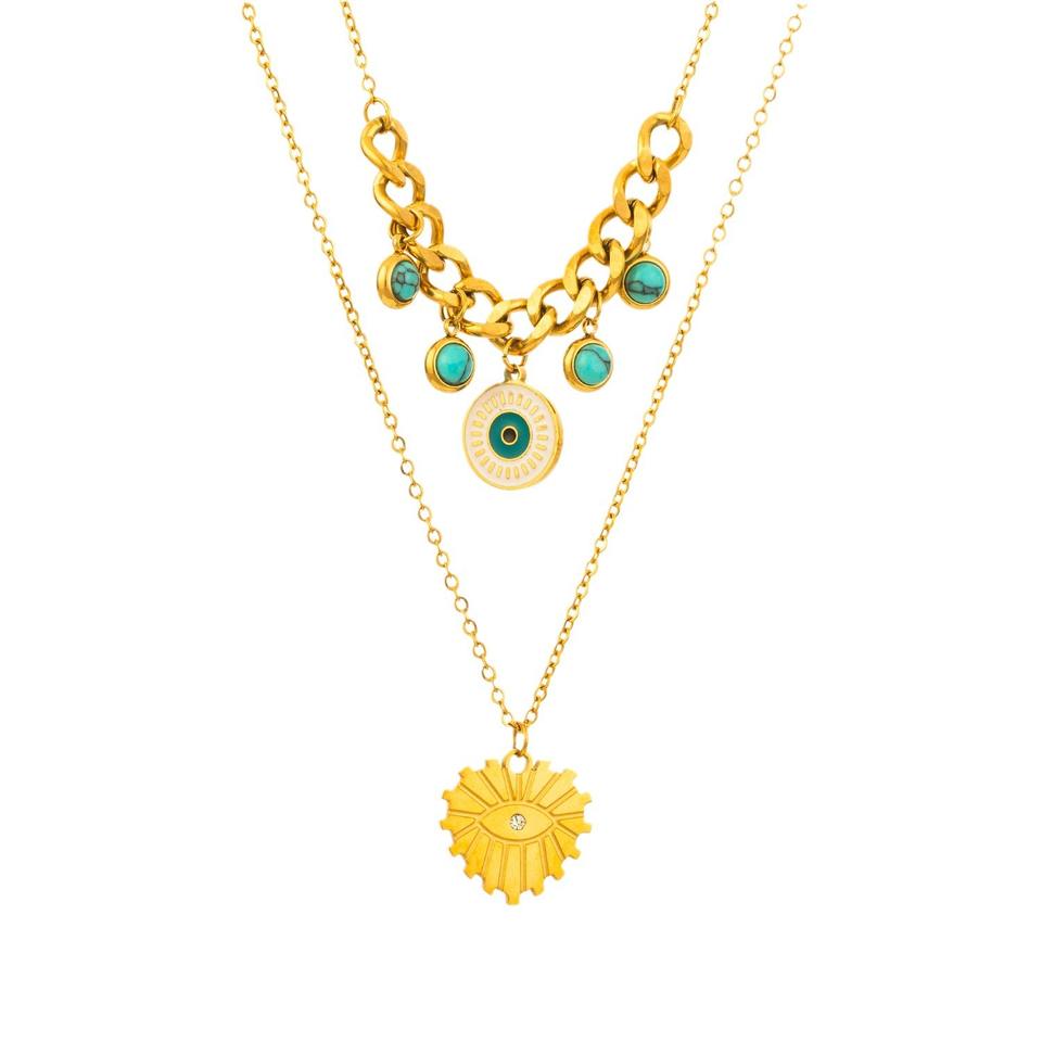 Fashion Turkiye Blue Eye Pendant Necklace 2 Layers Necklace Accessories Stainless Steel Vintage Devil Collares