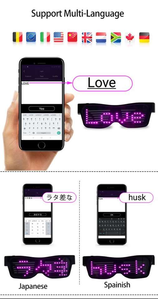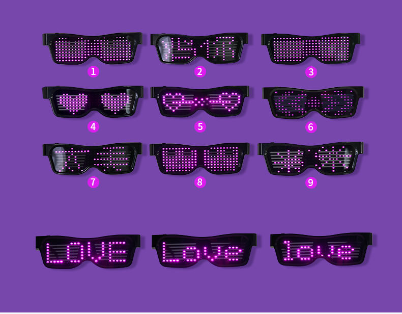 APP per occhiali ricaricabili USB messaggi da te occhiali lampeggianti a LEDNome del prodotto