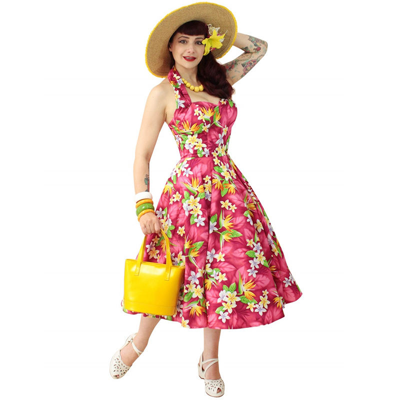 Fashion Vintage 1950s Style Halter Collar Sleeveless Strawberry Daiquiri Dress for Women