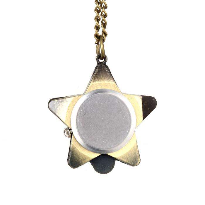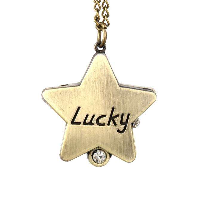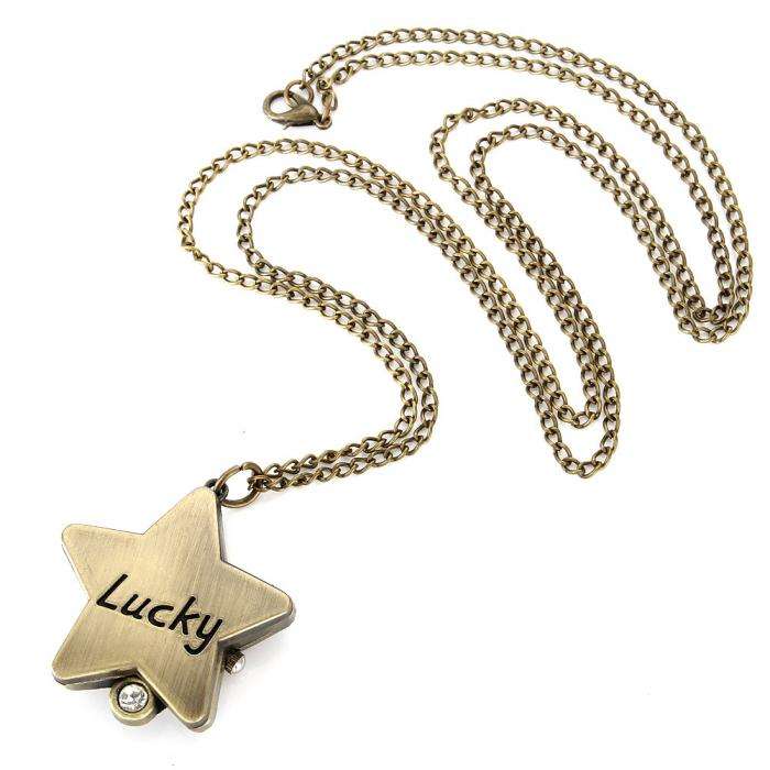 Fashion Vintage Quartz Watch Alloy Lucky Star Shape Women Lady Girls Sweater Chain Necklace Pocket Watch