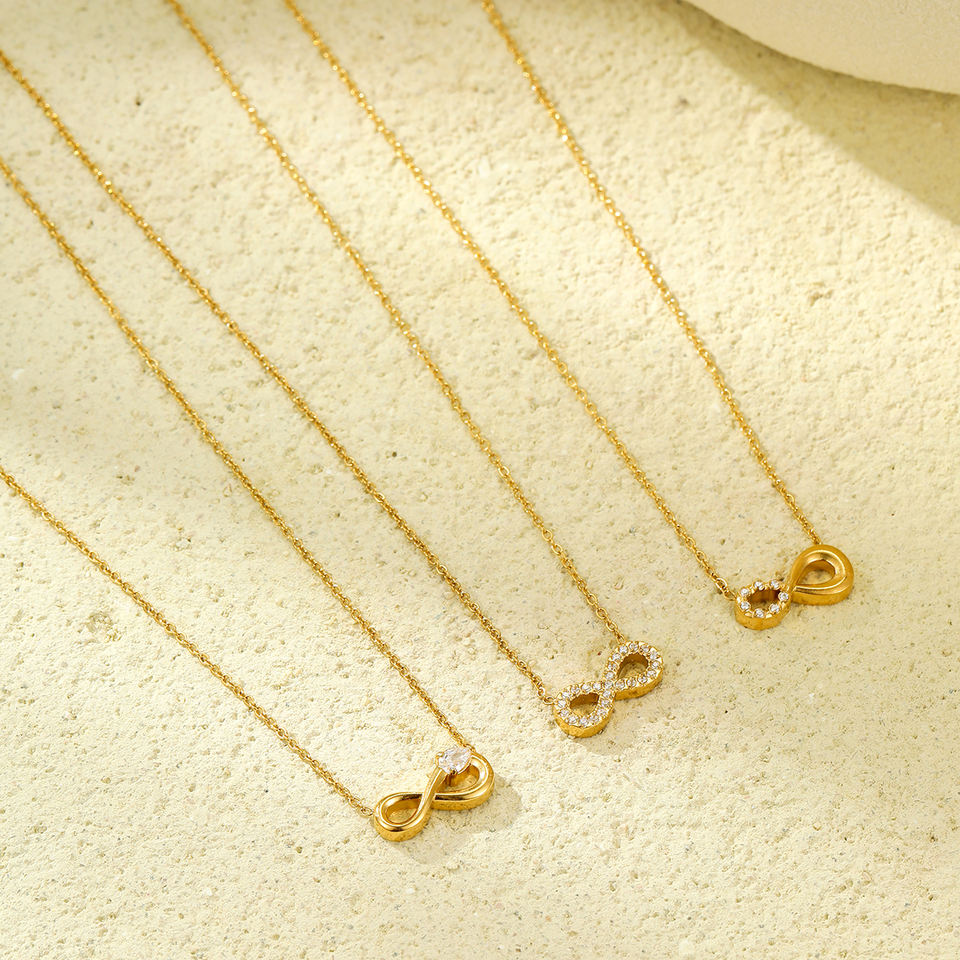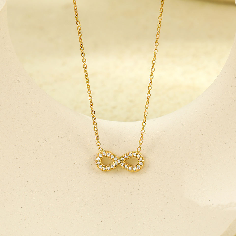 Gioielli di moda impermeabile PVD oro placcato 18K in acciaio inox zircone amore cuore Infinity lettera 8 ciondolo collana per le donne