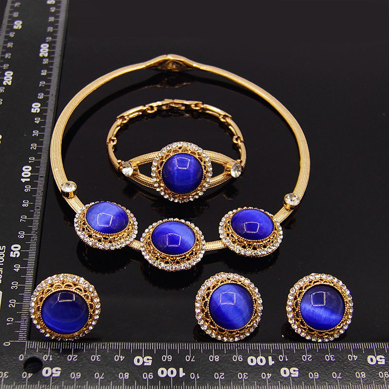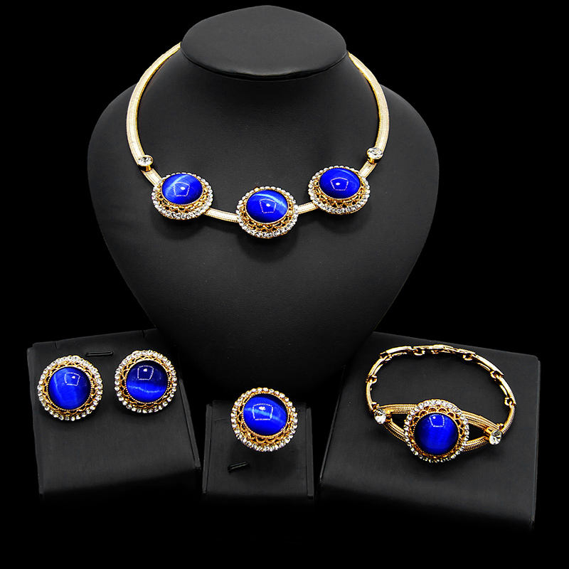 Fashion Wedding Gold Plated Four Jewelry Necklace Sets African Jewelry Sets Ethnic Jewelry Sets Necklace Bangle Earrings Jewels