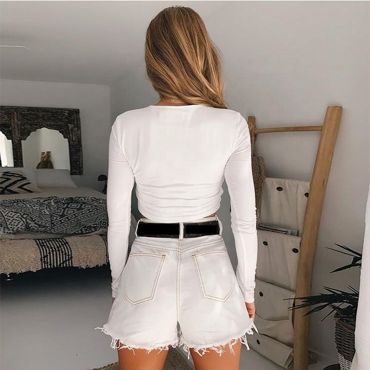 Top Corto Aderente Bianco alla Moda con Scollo a O e Schiena Scoperta, Camicie e Bluse da Donna
