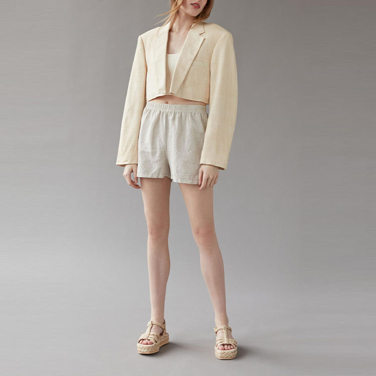 Blazer di lino da donna di moda all'ingrosso design personalizzato cappotti corti blazer corto