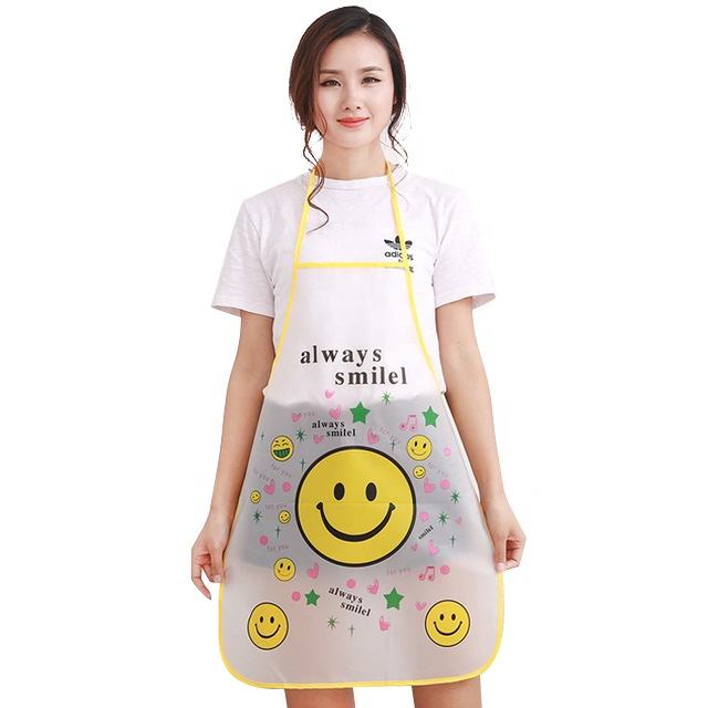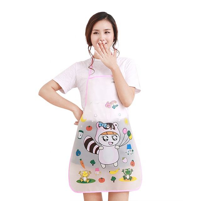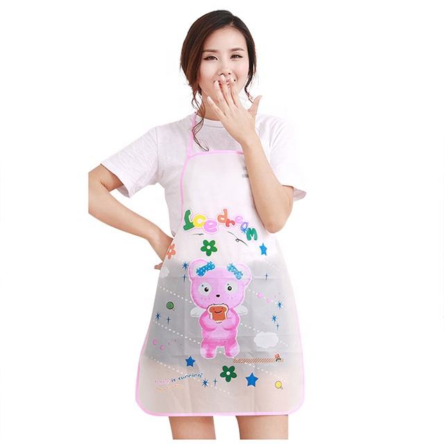 Fashion Women Cute Blue Elephant Cartoon Pvc Plastic Waterproof Kitchen Apron for Cooking