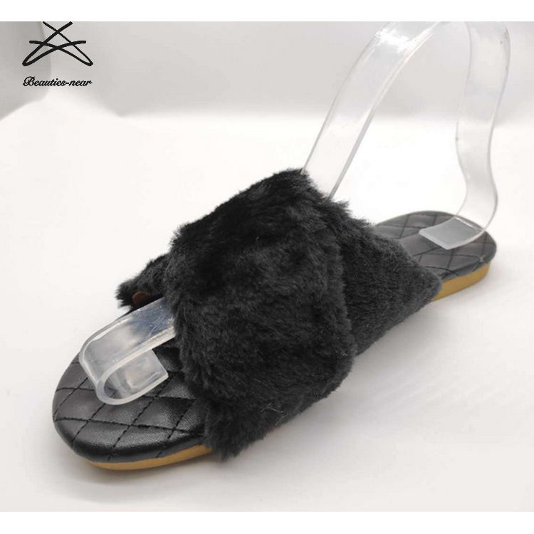 Fashion Women Indoor Cross Soft Warm Fur Flat Shoes Outdoor Winter Plush Furry Slipper for Lady slippers Slides