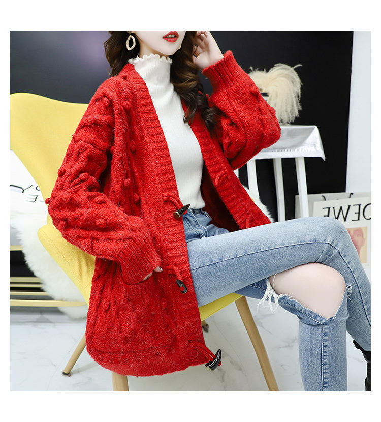 Fashion Women's Autumn and Winter Free Size Loose Fashion Handmade Cardigan Sweater With Balls