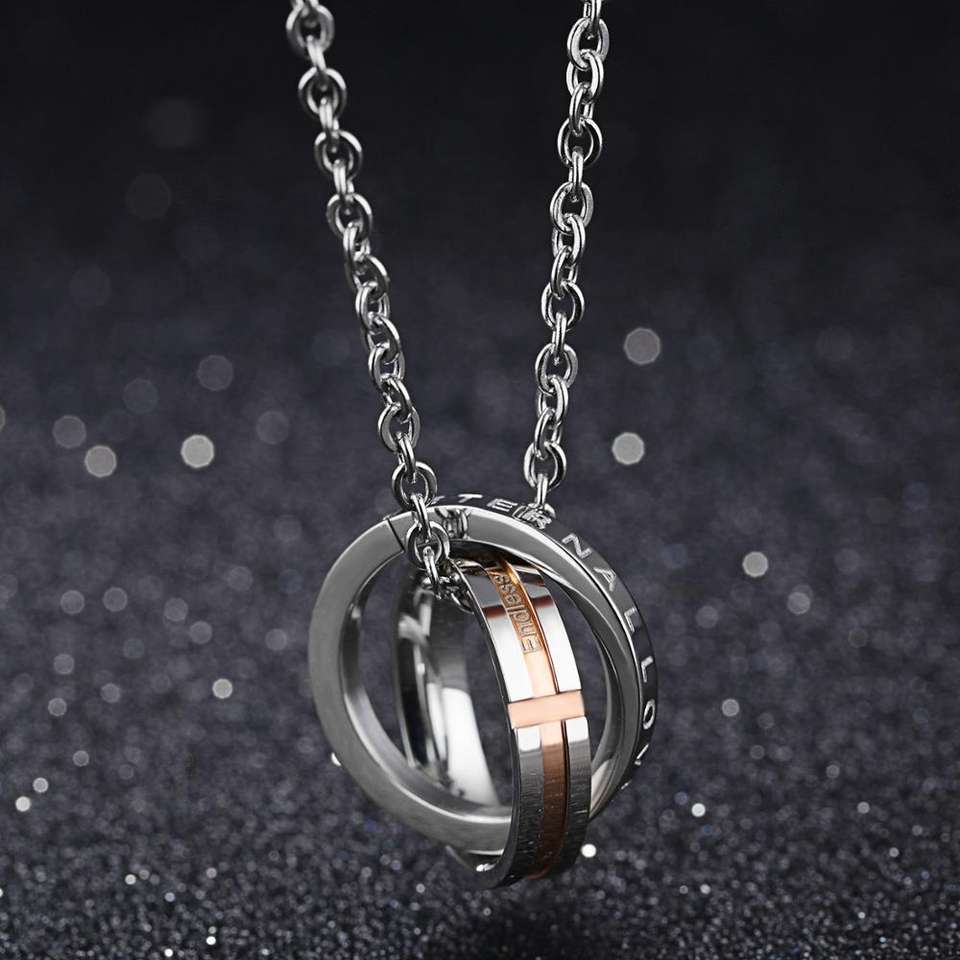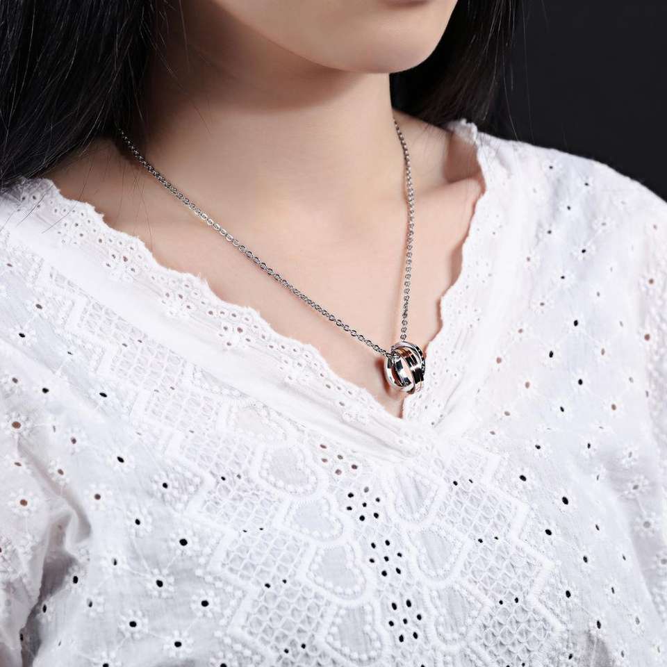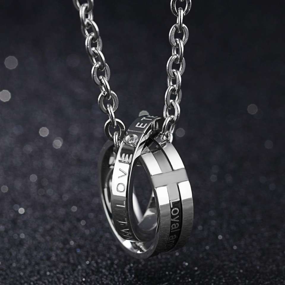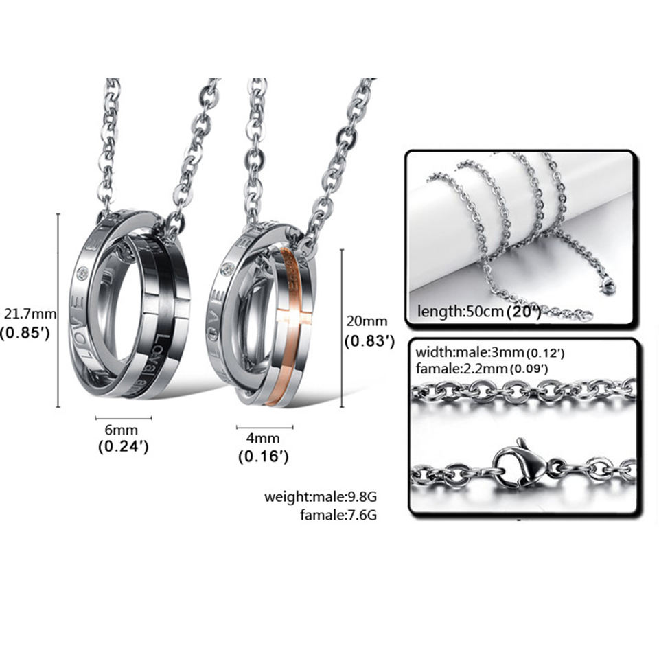 Moda zircone coppie collana in acciaio inossidabile lettera per donna uomo cristallo matrimonio doppi anelli catena pendente gioielli