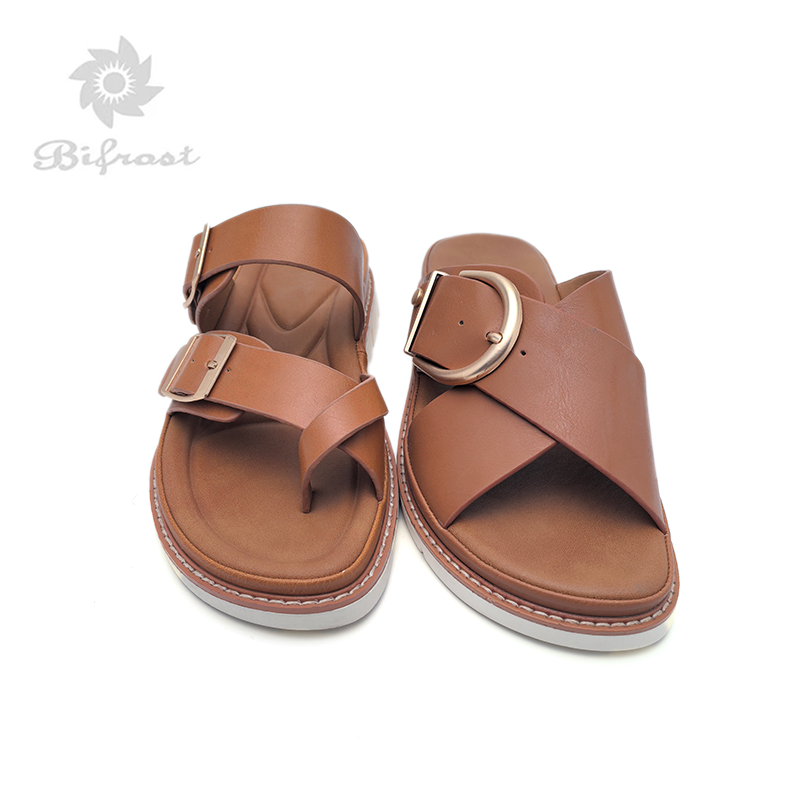 Sandali Casual da Donna alla Moda con Doppia Fibbia Metallica Marrone, Comodi e Antiscivolo