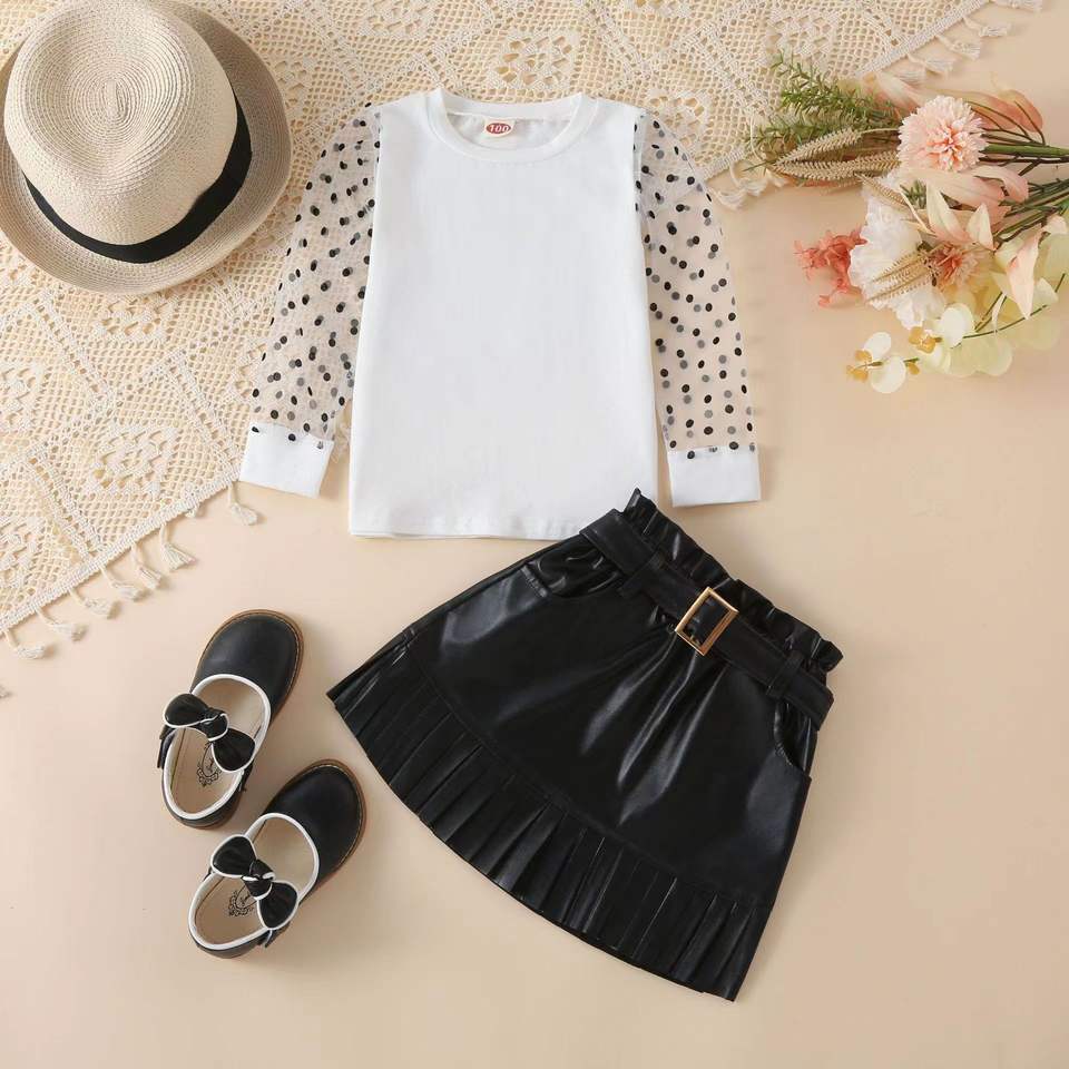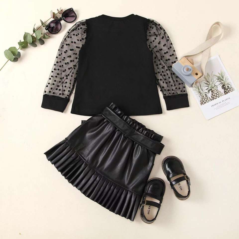 Fashionable Children Teen Puffy Sleeve Shirt Blouse Infant Other Girls Clothing for Kids lil girls clothes Little Girl Skirt Set 1 Piece into 1 opp bag