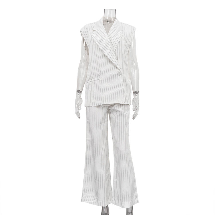 Completo Elegante a Righe Due Pezzi con Blazer Senza Maniche e Pantaloni, Tailleur Casual da Donna, Outfit Estivo