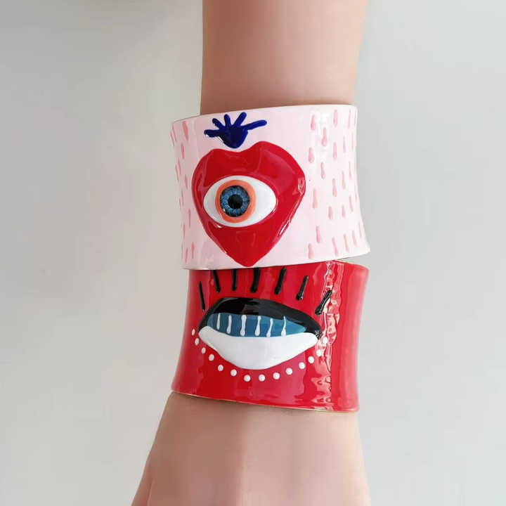 Fashionable Drop Oil Colors Big Evil Eye Heart Open Cuff Bracelets with 18k Gold Plated Designer Jewelry Bangles Sets for Women