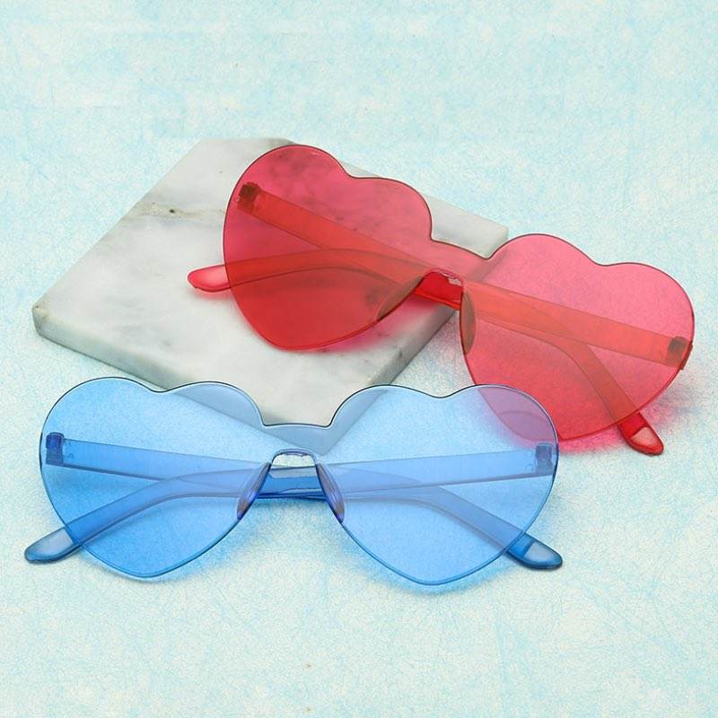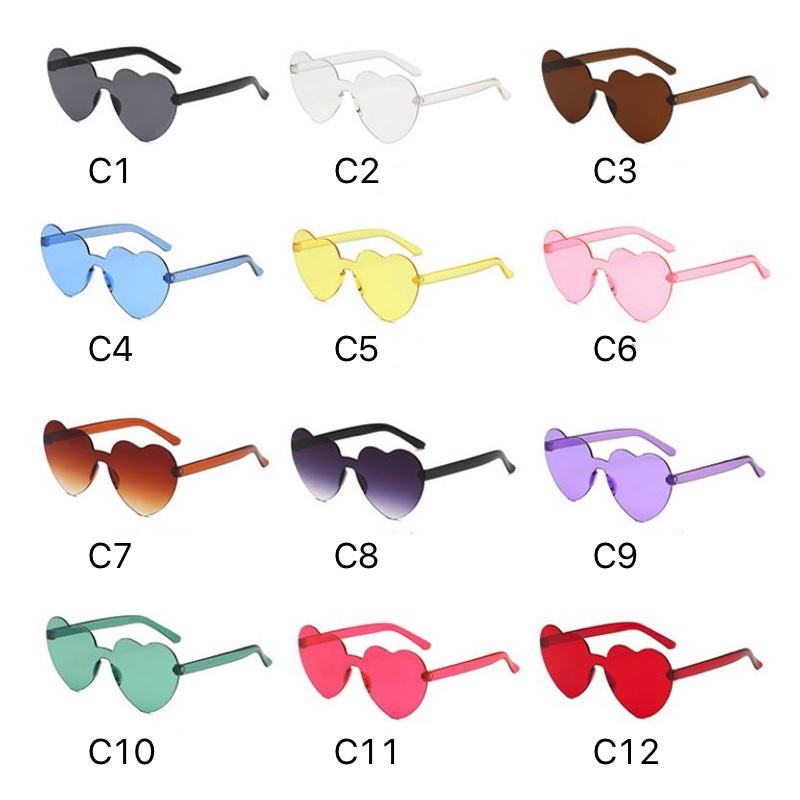 Occhiali da sole alla moda con lenti sfumate 12 colori caramella occhiali a forma di cuore bianco verde giallo viola rosso blu cornici fatte PC