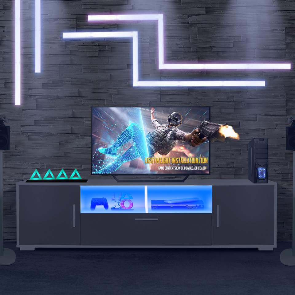 Mobile TV alla Moda con Luci LED e Telecomando, Centro di Intrattenimento con Striscia Luminosa Integrata