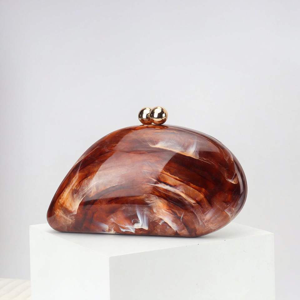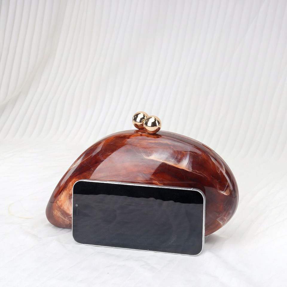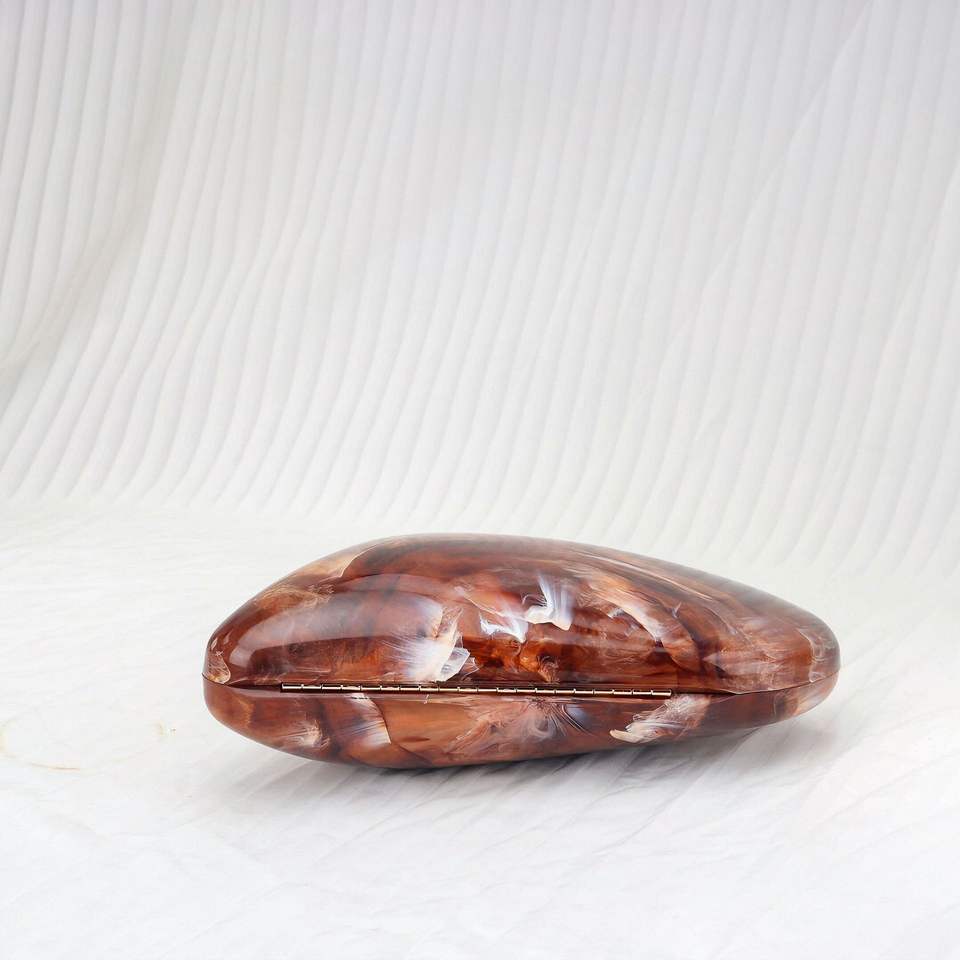 Guangzhou Lite Leather Pochette rigida in acrilico effetto marmo "goose egg box" 23×7×14,5 cm donna crossbody argento/oro/nero/rosso/caffè 50 pz/box