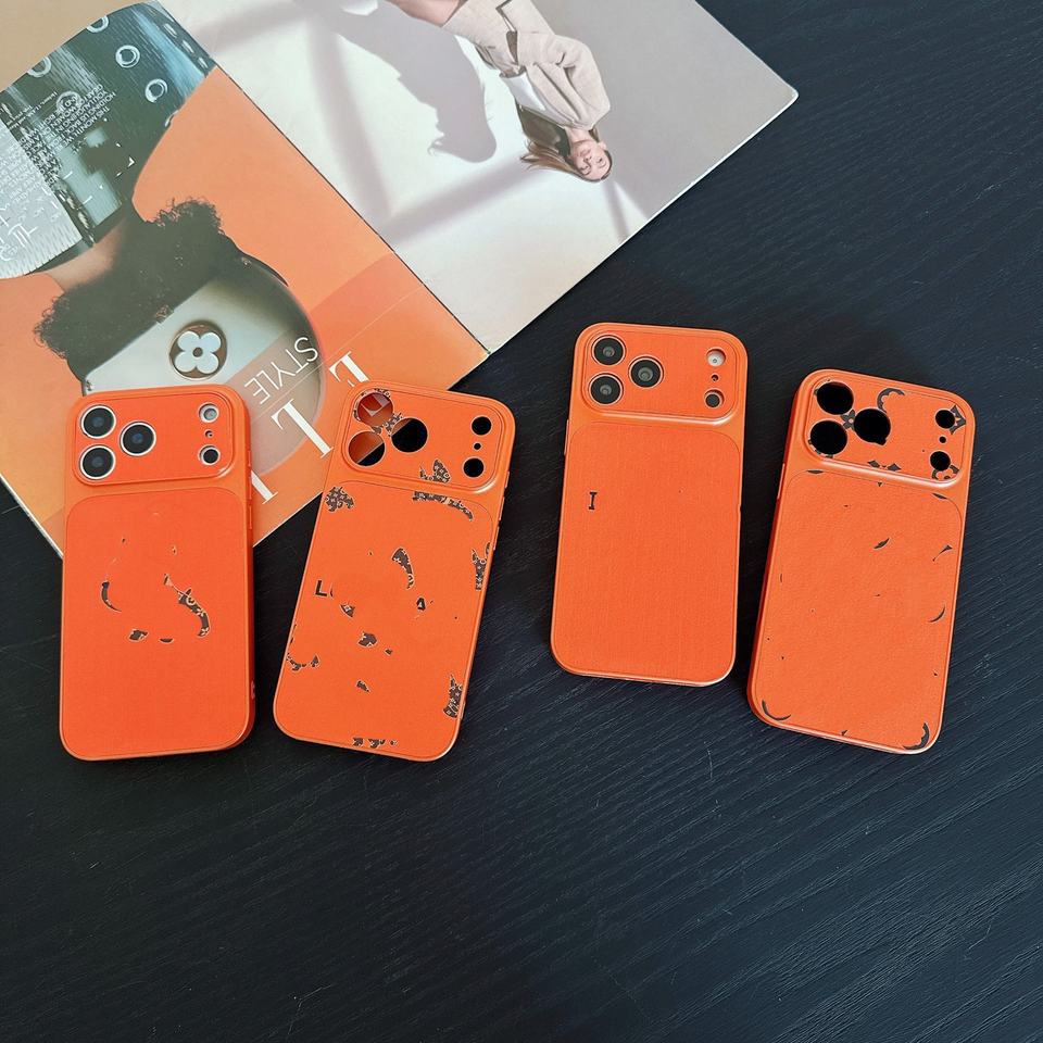 Fashionable Orange Branded Phone Cases Luxury Designer Mobile Phone Protective Cover