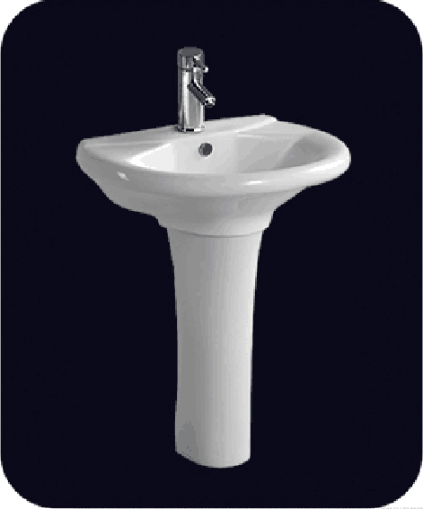 Alla moda singolo foro ceramica arte lavabo con piedistallo di fissaggio a parete con la schiena