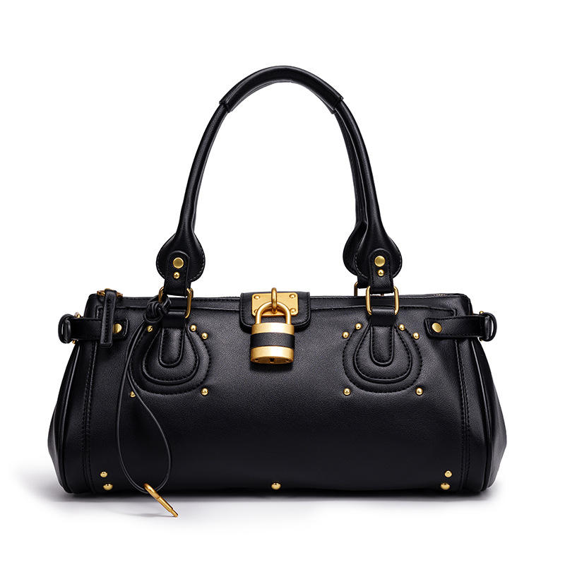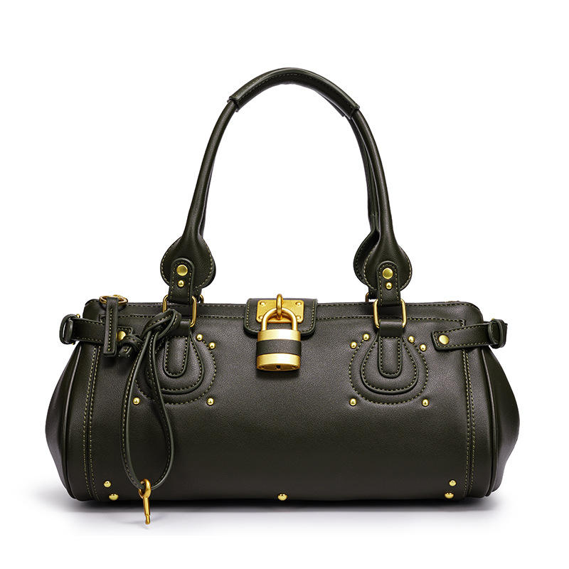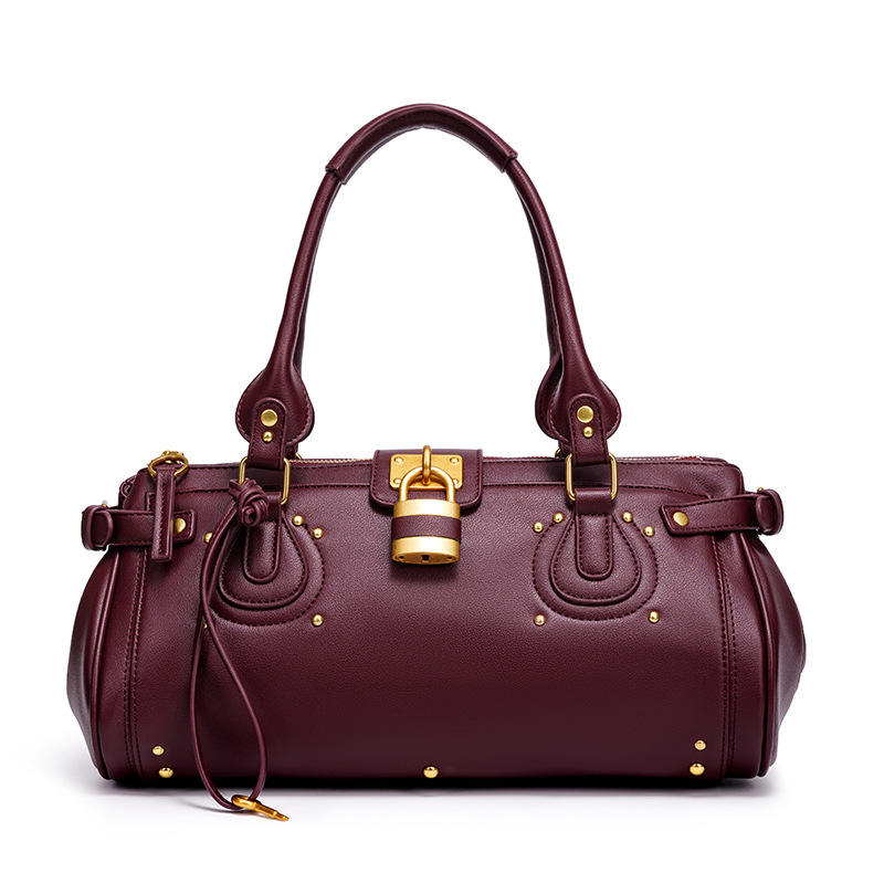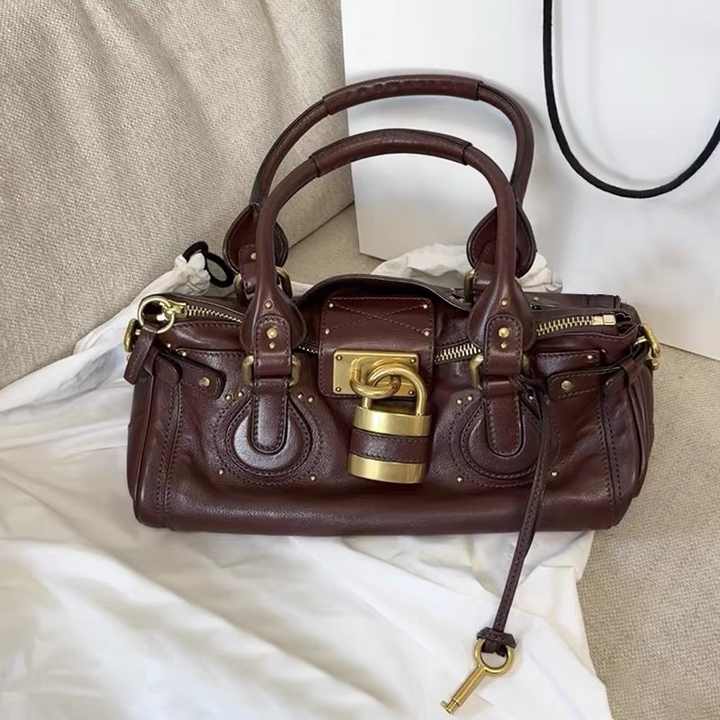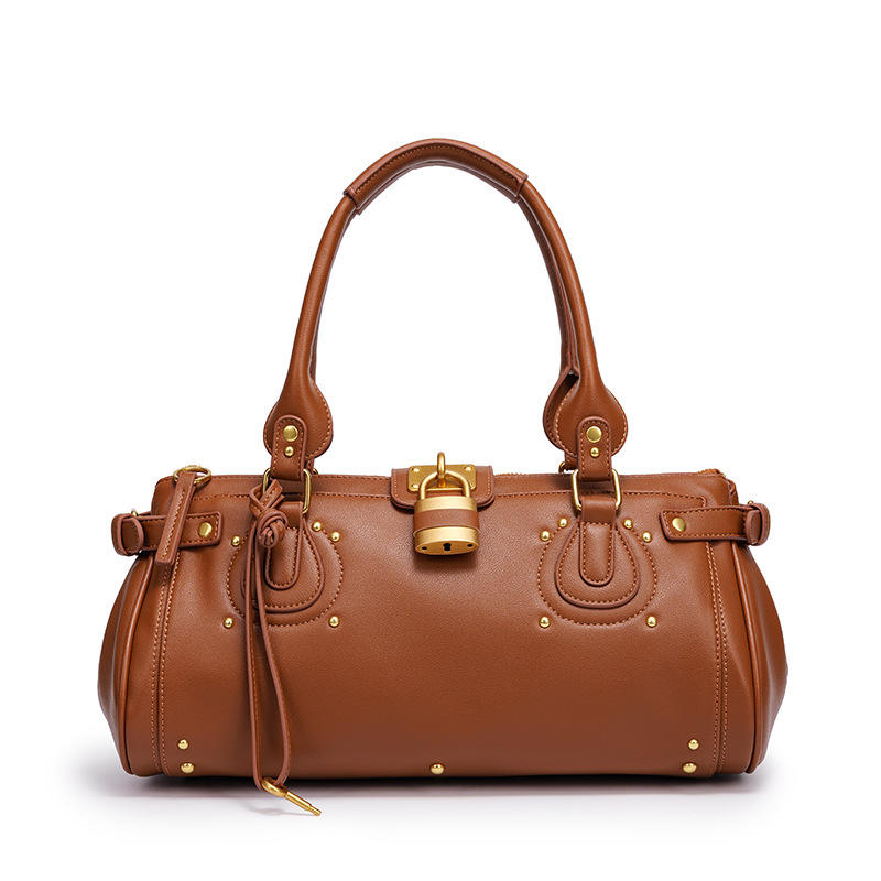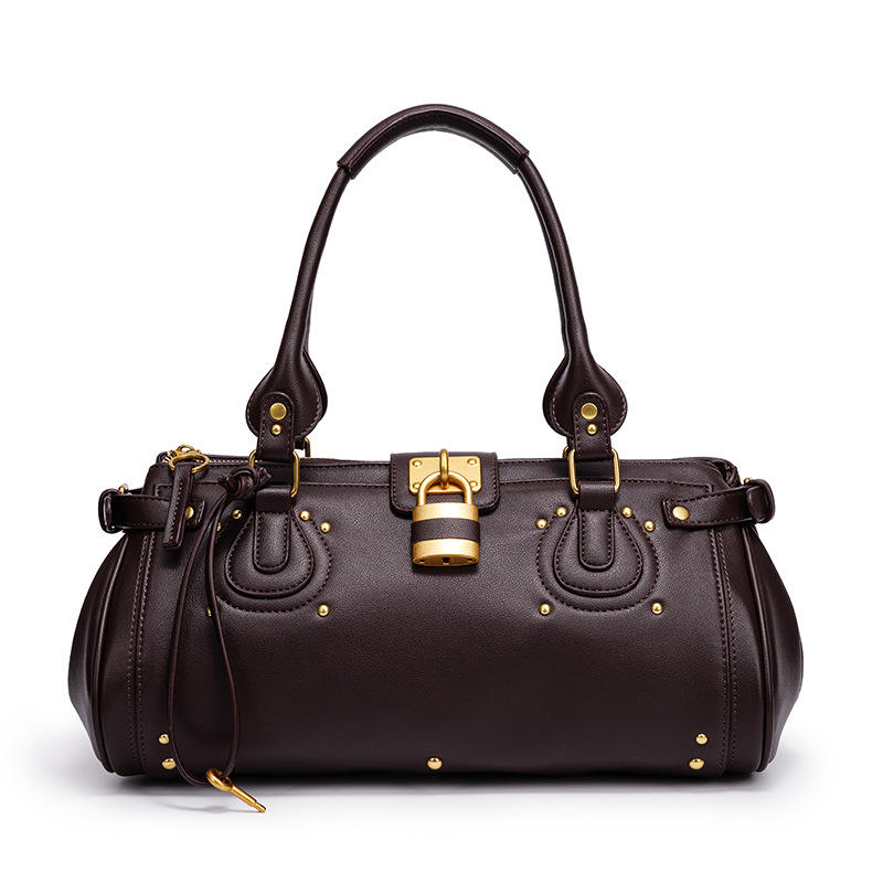 Eleganti Borse Boston Multitasca per Donne, Borse a Tracolla Marrone con Grande Chiusura a Lucchetto da Guangzhou