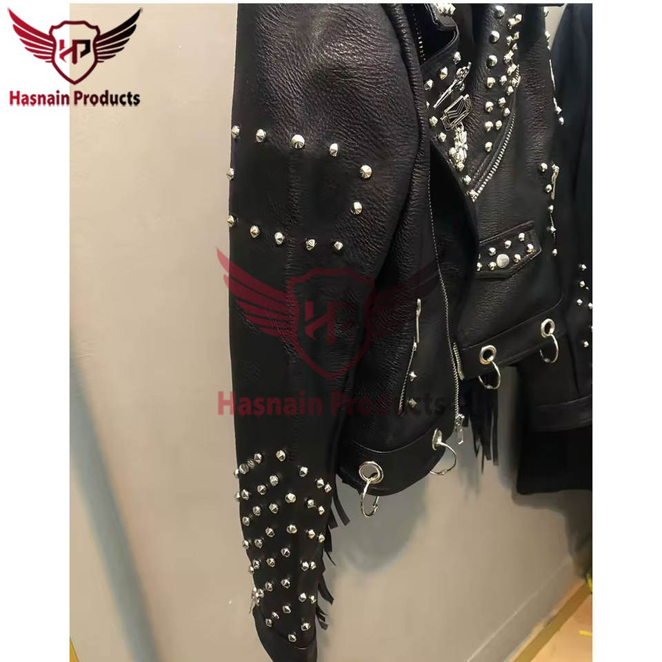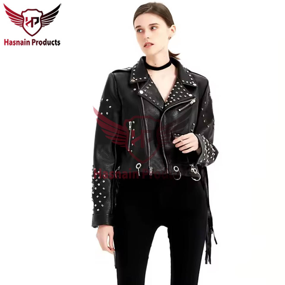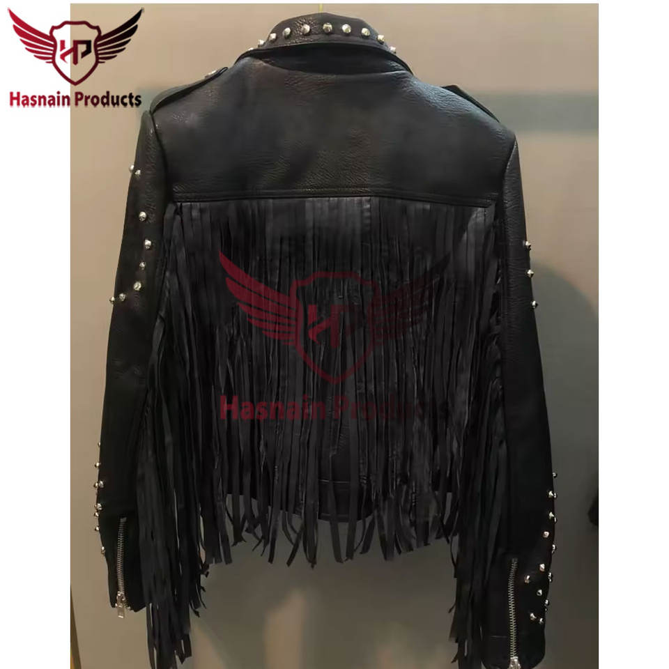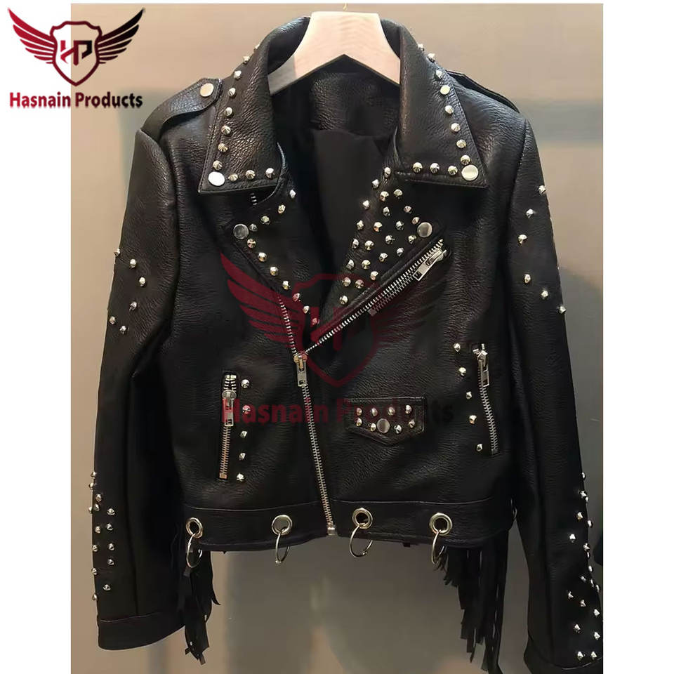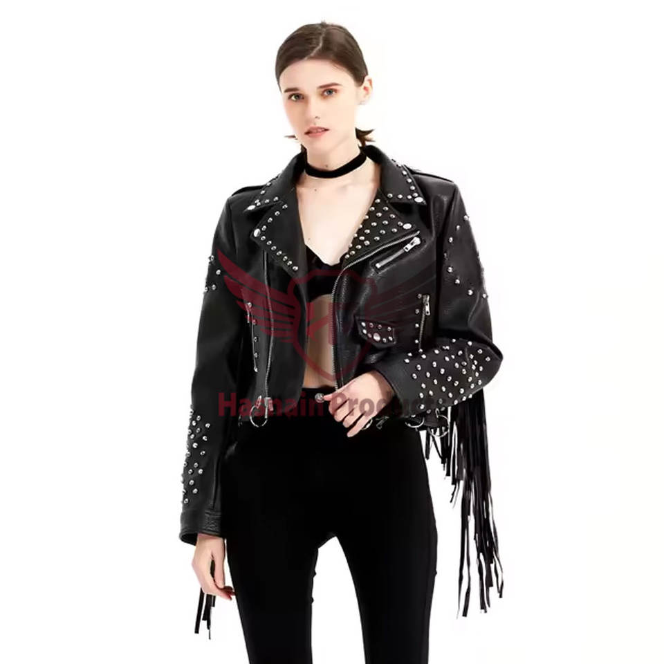 Fashionable Women's Long Sleeve Genuine Leather Fringe Cropped Jacket with Double Layer Design - Stylish Fall Outwear Suit