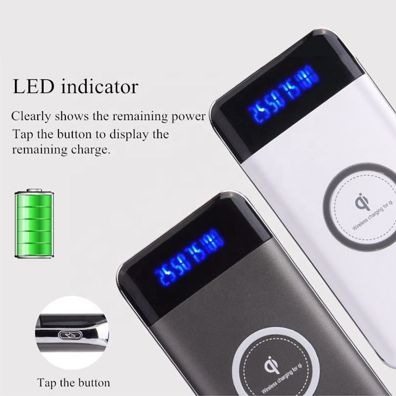 Powerbank Wireless Ultra Sottile ad Alta Capacità con Ricarica Rapida, Batteria Li-Polymer IQ, Doppia Uscita USB, Display LED, Ingresso Micro USB