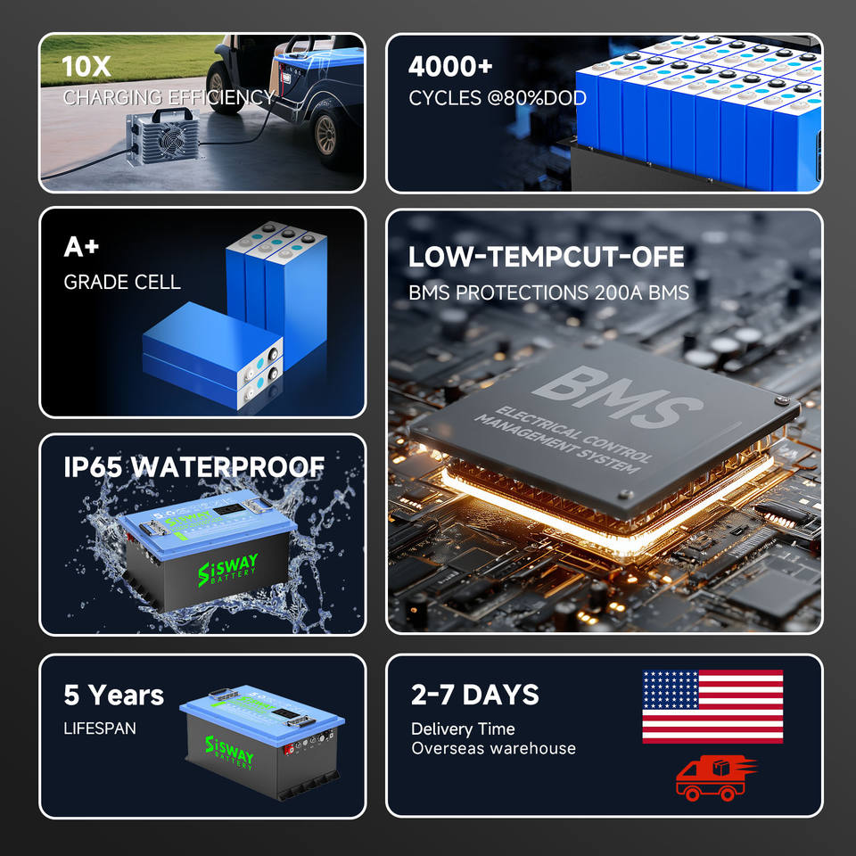 Batteria al Litio a Ricarica Rapida per Golf Car 36V 48V 72V 96V LiFePO4 100Ah 200Ah 300Ah 400Ah per Tempi di Consegna Rapidi e Flotte a Noleggio