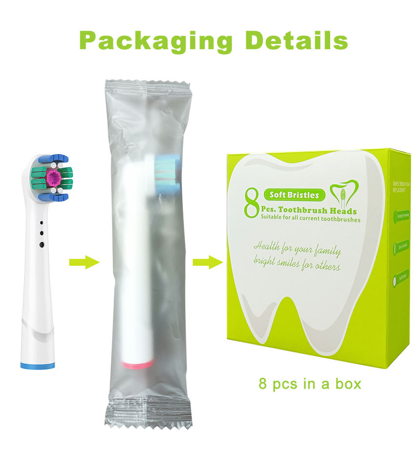 Consegna Rapida, Confezione da 8 Testine Professionali per Spazzolino Elettrico, Ricambi per Pro 1000/9600/500/3000/8000