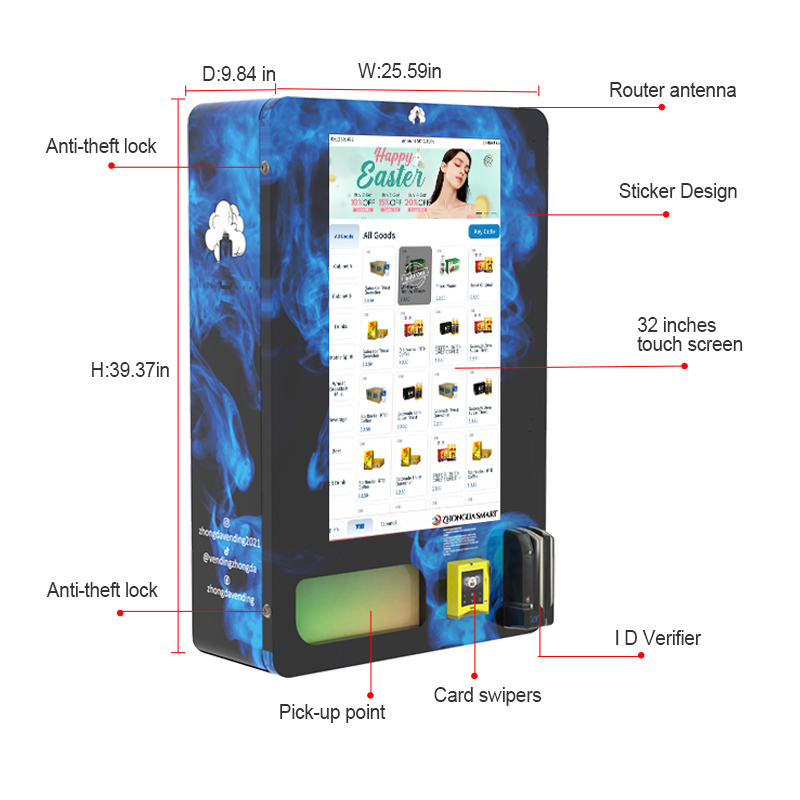 Distributore Automatico a Parete per Attività Commerciali con Consegna Rapida, Verifica dell'Età SDK, Schermo da 32 Pollici e Opzioni di Pagamento Multiple