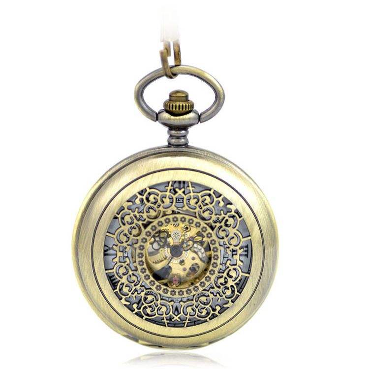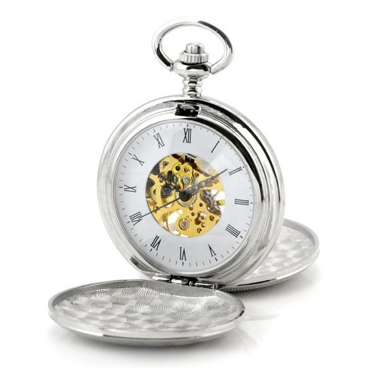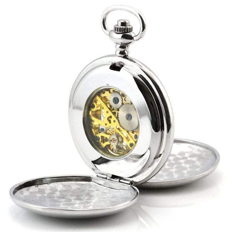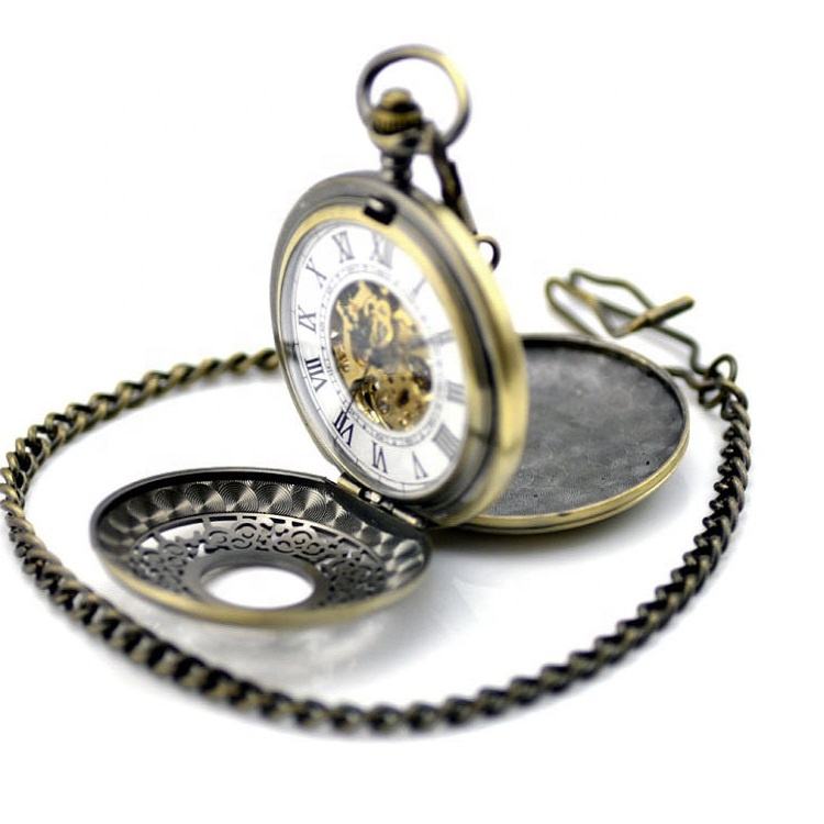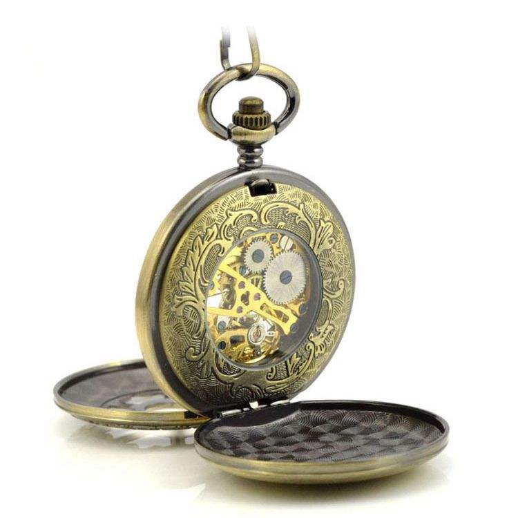 Orologio da Tasca Meccanico Scheletrato Doppio Hunter Retrò con Catena, Spedizione Rapida