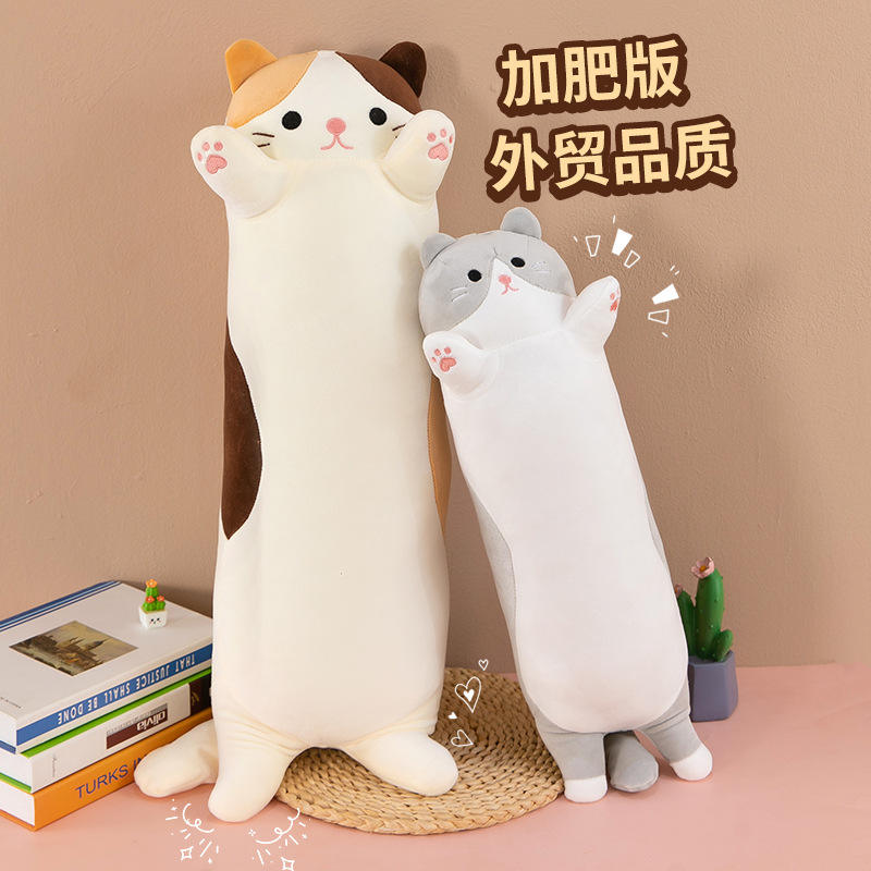 Cuscino lungo grasso rotondo per gatti coccolone abbraccio nero gatto bianco morbido cuscino gatto peluche giocattolo carino giocattolo peluche fabbrica all'ingrosso