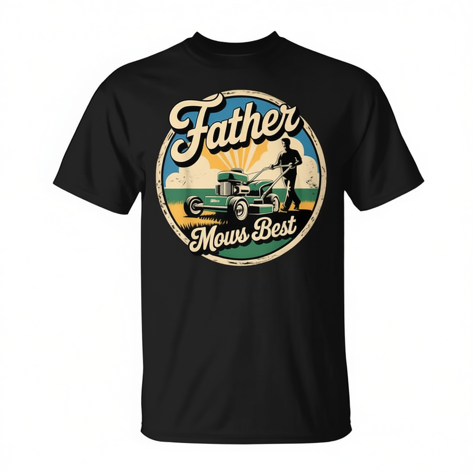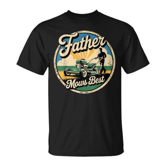 T-shirt Father Mows Best da uomo, nera, con grafica, design divertente per la cura del prato, con scritta 'Dad Joke'