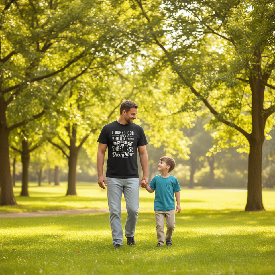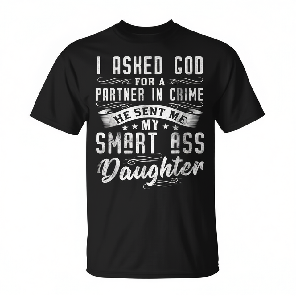 T-shirt da uomo a maniche corte girocollo con stampa serigrafica per la festa del papà, con scritta 'Partner in Crime Smartass Daughter Dad'