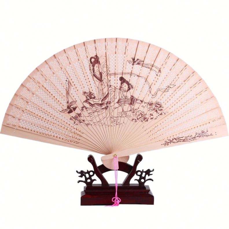 Fatingna Ancient Style Sandalwood Folding Fan Intricate Engraving Hollow Classical Wooden Crafts Wooden Boxes Wall Signs