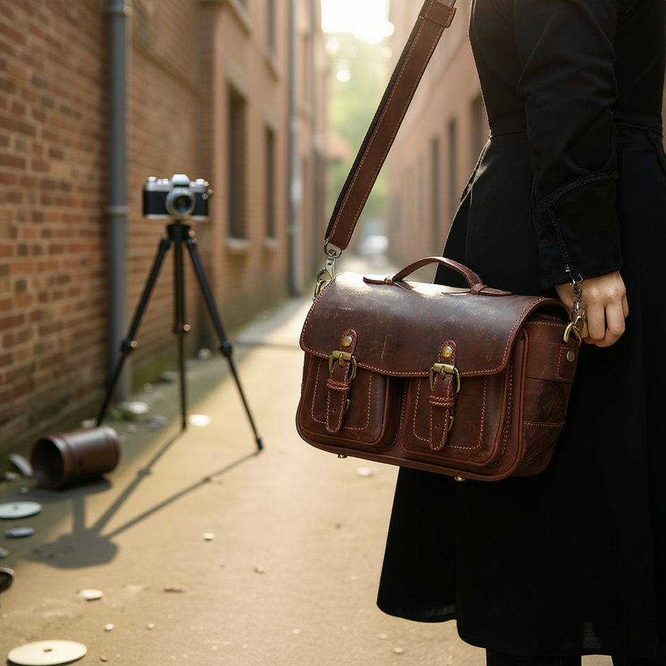Faust Vintage Crossbody Leather Camera Bag Dark Brown Retro Style for Camera and Video Equipment