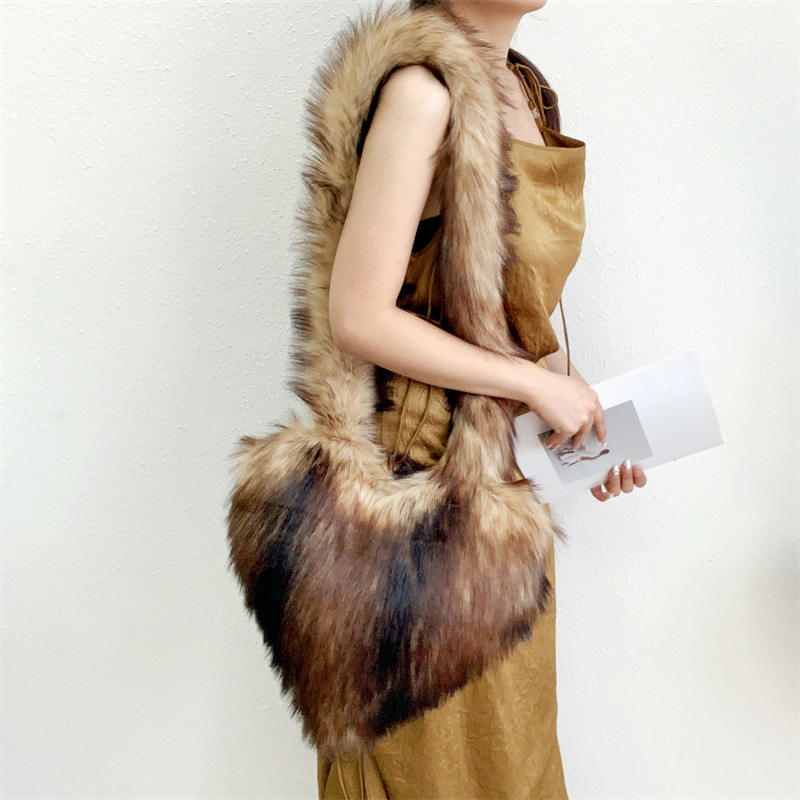 Borsa a Tracolla a Forma di Cuore in Ecopelliccia, Borse di Lusso Invernali per Signore, Borsa a Tracolla Soffice per Trucco e Bellezza