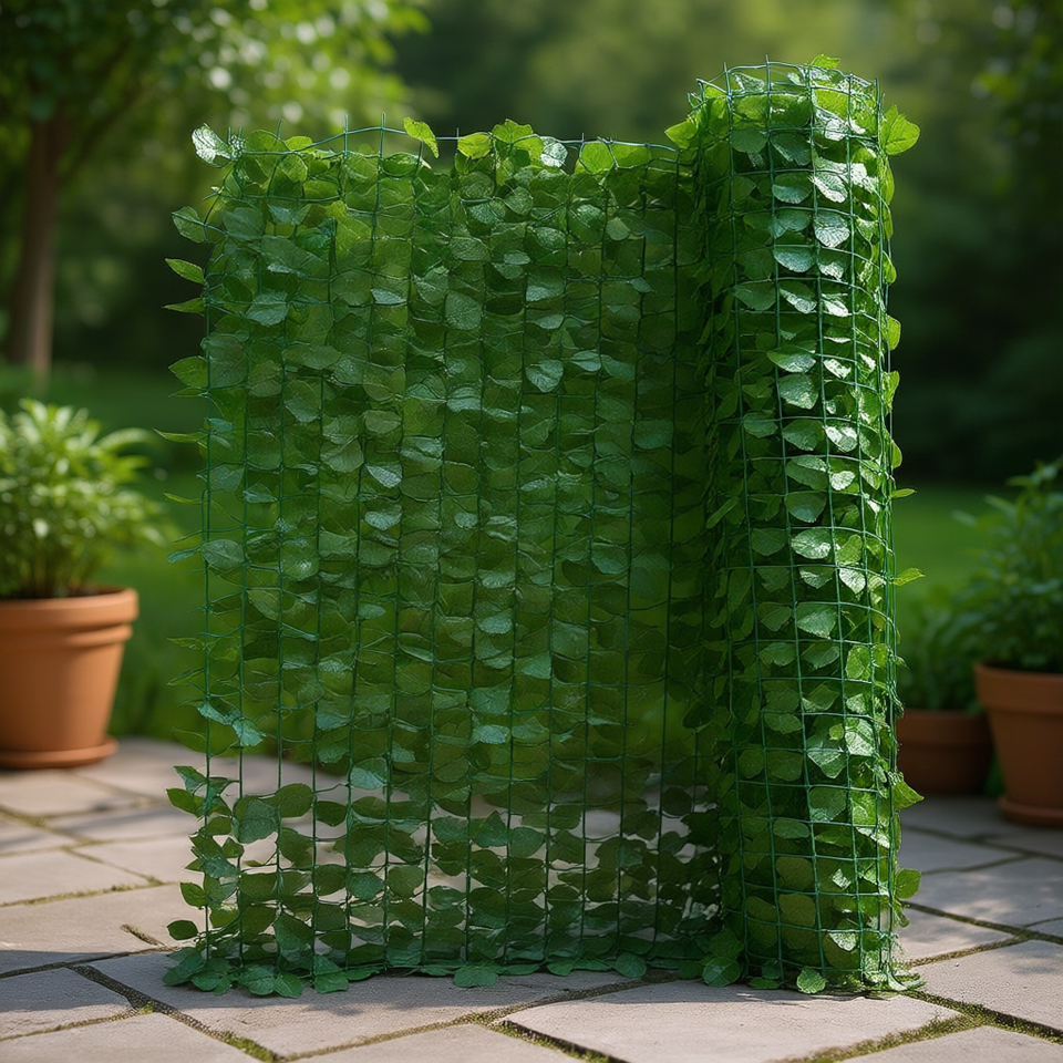 Schermo Divisorio Pieghevole Verde con Foglie di Edera Finte, Struttura Senza Cornice, Tema Vegetale Moderno Decorativo