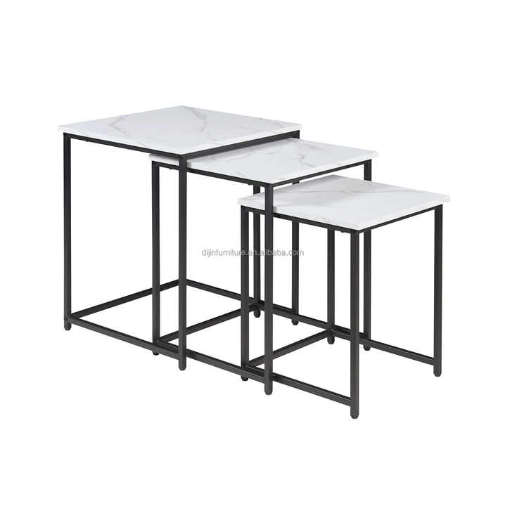 Tavoli laterali in finto marmo Set di 3 tavoli da soggiorno scorrevoli con struttura in metallo quadrati divano tavolo in marmo bianco