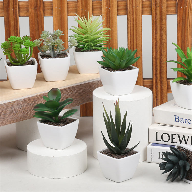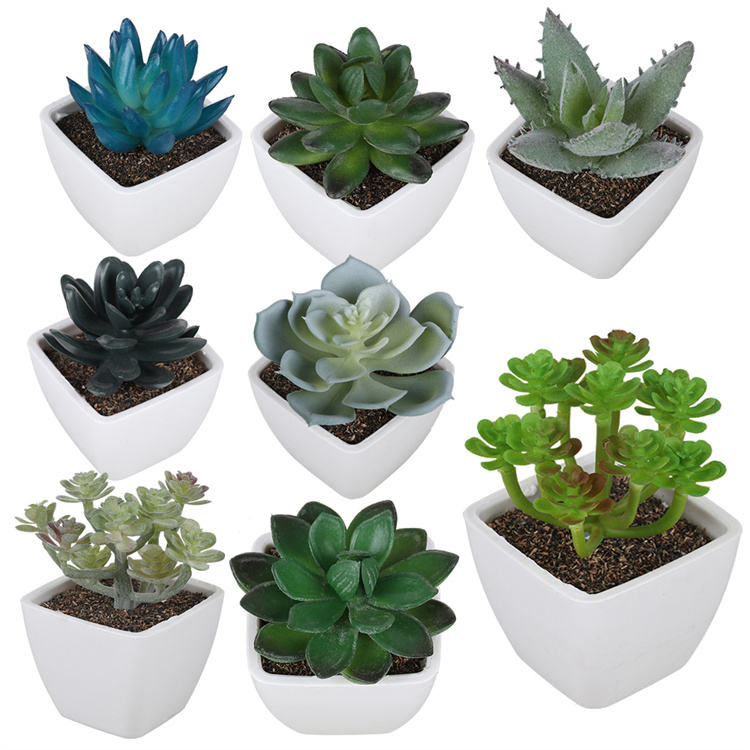 Faux Mini Artificial Succulent Plants Potted Fake Cactus Aloe Vera Crassulaceae Succulents for Garden Wedding, Home Decor Table