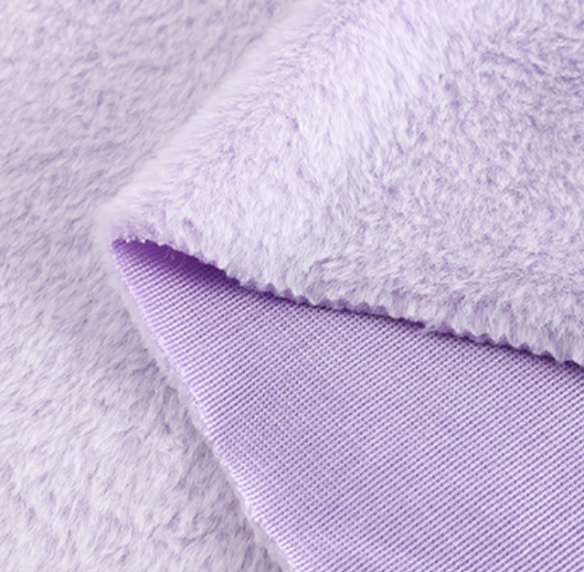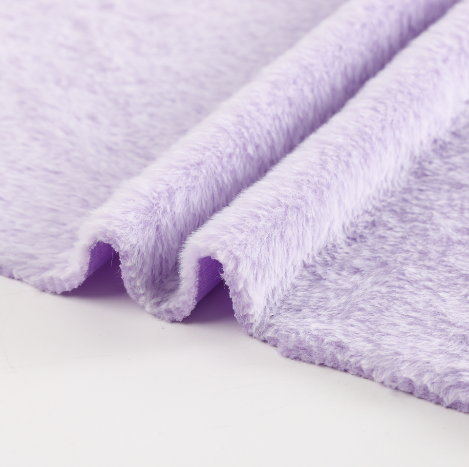 Tessuto in Peluche Monofacciale Super Morbido 350gsm con Stampa e Goffratura Effetto Pelliccia di Coniglio, 100% Poliestere con Retro in Maglia per Giocattoli e Abbigliamento