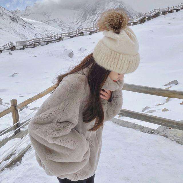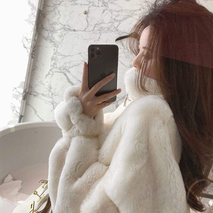 Cappotto Slim in Finta Pelliccia di Coniglio Rex per Donna, Autunno Inverno 2025, Nuovo Modello Piccolo, Stile Influencer, Lungo e Soffice