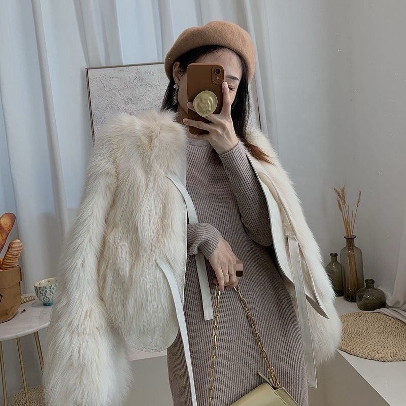 Cappotto in Pelliccia Sintetica di Volpe Glamour Stile Corto da Influencer Autunno 2023 Lussuoso Versatile Multiuso con Lacci per Donna